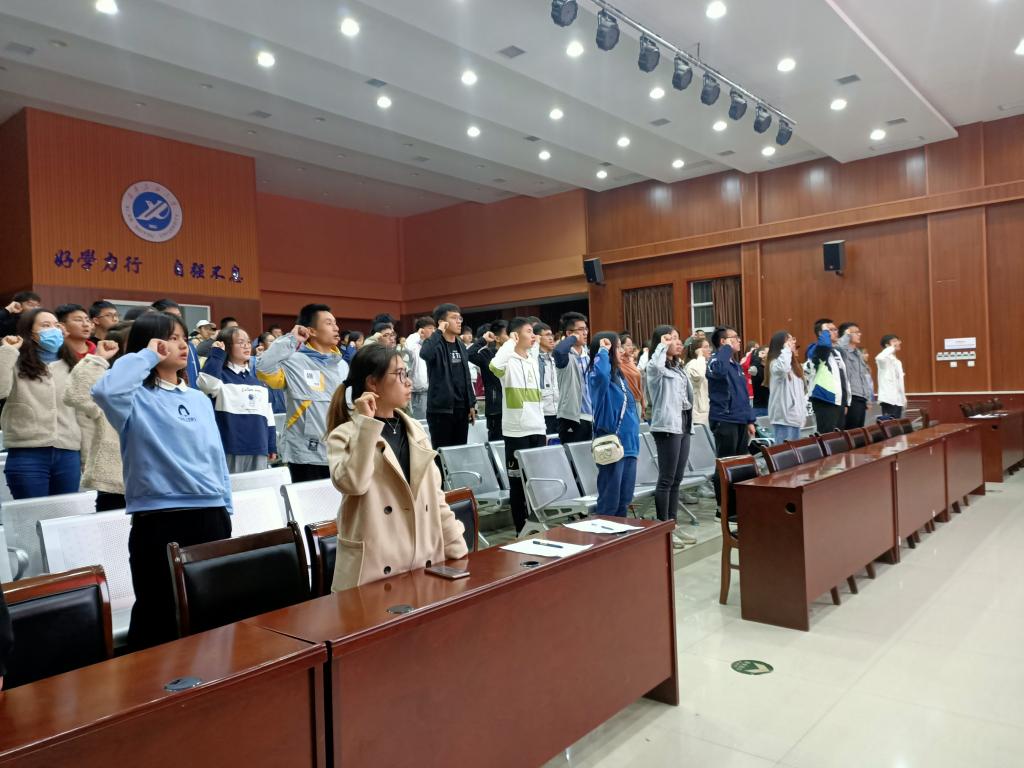 肖瓊老師以“握手“”言歡“的體驗(yàn)活動(dòng)開場(chǎng),向參訓(xùn)同學(xué)介紹了我校學(xué)生心理成長(zhǎng)指導(dǎo)中心基本情況,“油緣心理“名片符號(hào)和“如石油之動(dòng)力、惜相遇之機(jī)緣、助心理共成長(zhǎng)”的文化理念。隨后,從“朋輩互助”“心靈守護(hù)”兩個(gè)方面宣講了高校班級(jí)心理委員角色的緣起,心理委員的工作職責(zé)、定位和權(quán)利,鼓勵(lì)同學(xué)們以心理委員這一崗位為自我成長(zhǎng)的契機(jī),發(fā)揮朋輩互助的功能,為促進(jìn)自尊自信、理性平和、積極向上的校園心理氛圍做出貢獻(xiàn)。為便于心理委員開展工作,肖教師向參訓(xùn)同學(xué)展示了我校心理咨詢網(wǎng)絡(luò)平臺(tái),并推薦全國(guó)高校心理委員工作平臺(tái)上研發(fā)的心理委員工作技能慕課,以提高同學(xué)們工作的專業(yè)性。西安石油大學(xué)心理委員聯(lián)合協(xié)會(huì)會(huì)長(zhǎng),國(guó)貿(mào)1902班的方藝霏同學(xué)帶領(lǐng)全體心理委員進(jìn)行了“我是一名心理委員”的莊嚴(yán)宣誓。