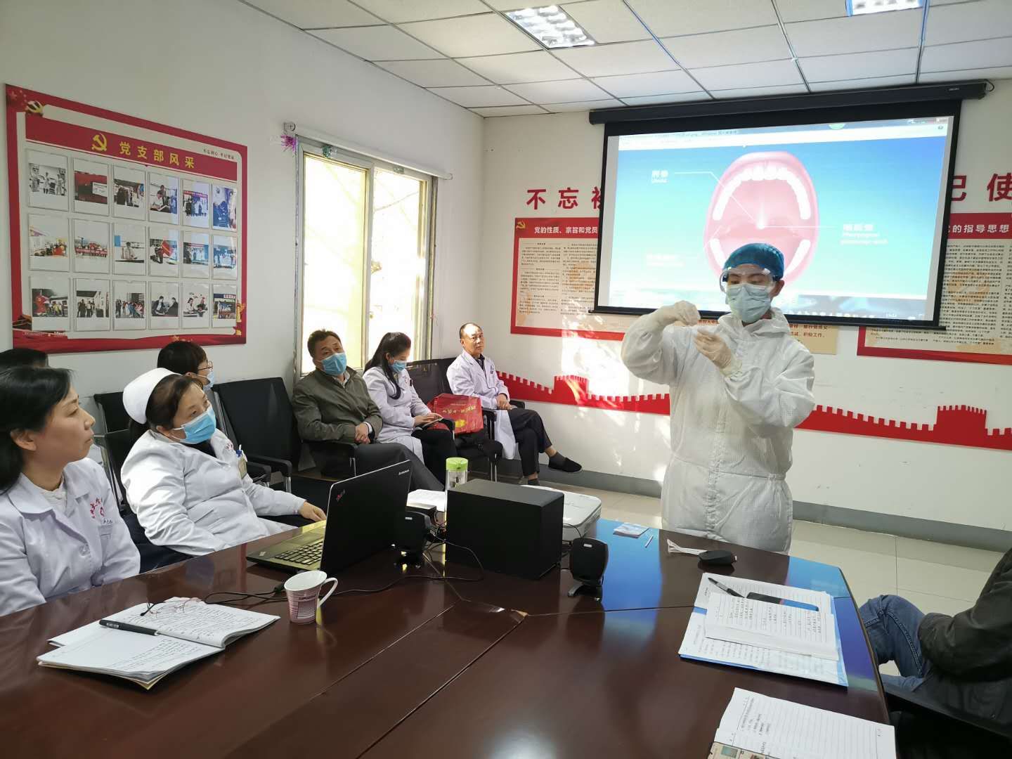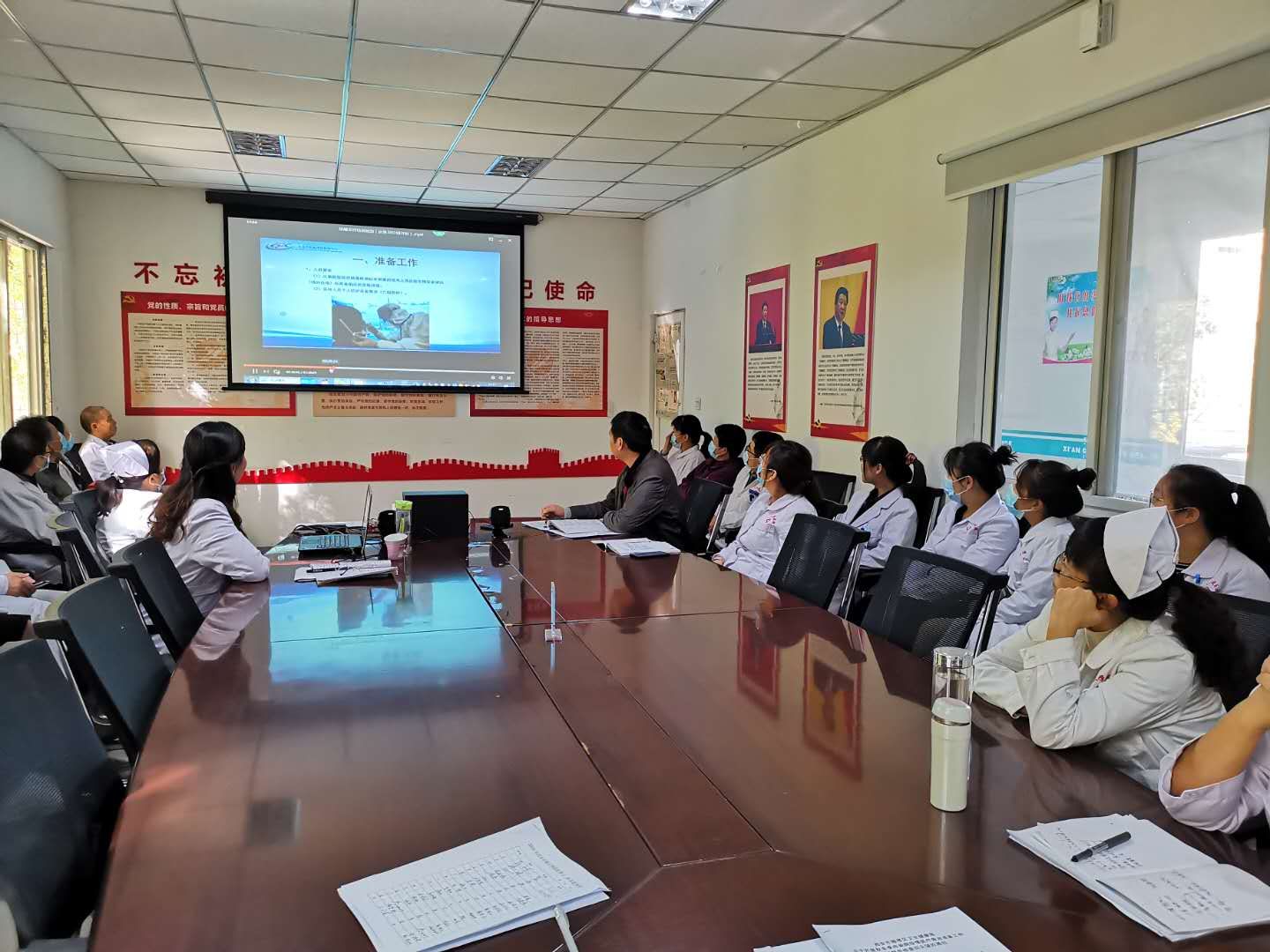 一、傳達(dá)會(huì)議精神和理論知識(shí)培訓(xùn),李明珠副院長(zhǎng)傳達(dá)了1020日晚上雁塔區(qū)衛(wèi)健局召開的關(guān)于《進(jìn)一步加強(qiáng)全市醫(yī)療機(jī)構(gòu)醫(yī)院感染防控工作》會(huì)議精神和講解了有關(guān)新冠肺炎診療方案(試行第八版)。崔廣志院長(zhǎng)根據(jù)會(huì)議要求,強(qiáng)調(diào)了醫(yī)院感染管理地重要性,認(rèn)真落實(shí)“九個(gè)一律”,安排部署好秋冬季疫情防控工作,特別強(qiáng)調(diào)了“九個(gè)一律”是紅線、是底線,任何工作人員不得逾越!院感負(fù)責(zé)人伍曉燕講解了醫(yī)院的感染防護(hù)要求和標(biāo)準(zhǔn),再次講解了消毒液的配制要求和醫(yī)療廢物的正確收集、處理。