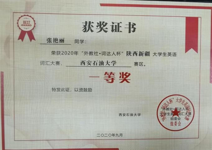 為更好地滿足高校大學(xué)英語網(wǎng)絡(luò)教學(xué)需求,提升大學(xué)英語智能化教學(xué)水平,豐富大學(xué)英語教學(xué)體系和內(nèi)涵,促進英語學(xué)習(xí)、測試手段創(chuàng)新,提升大學(xué)生英語學(xué)習(xí)興趣和自學(xué)能力,上海外語教育出版社與陜西省大學(xué)外語教學(xué)研究會以及新疆自治區(qū)高校外語教學(xué)研究會聯(lián)合主辦2020年度“外教社·詞達(dá)人杯”陜西新疆高校大學(xué)生英語詞匯大賽。西安石油大學(xué)外國語學(xué)院于9月20日承辦了此次英語詞匯大賽。