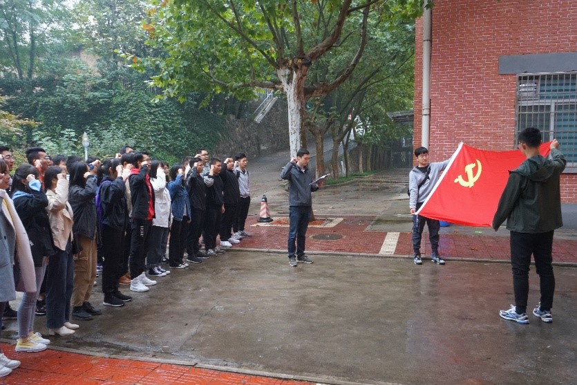 參觀結(jié)束后,在丁亦喆老師的帶領(lǐng)下,全體參觀黨員在時間科學(xué)館門前重溫入黨誓詞。在新舊時空的交錯中體會入黨時的熱血與激情,堅定入黨時的理想與信念。上午12時,此次參觀活動正式結(jié)束。此次活動在授時中心時間科學(xué)館中回溯革命先烈篳路藍縷艱苦卓絕的奮斗歷程,展望新時代知識分子攻堅克難勇?lián)姑膴^斗精神。在黨旗下,在誓詞中不忘初心,繼續(xù)前行。