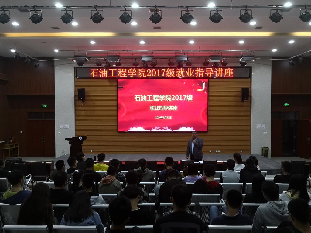 為做好我院2017級畢業(yè)生就業(yè)教育與指導工作,幫助廣大畢業(yè)生全面客觀地認清當前就業(yè)形勢,進一步增強畢業(yè)生就業(yè)能力,石油工程學院于9月22日晚7點在經管人文樓118多功能廳召開2017級就業(yè)指導講座。本次講座由學生工作部(處)副部(處)長、就業(yè)指導中心副主任樊曉旭主講,學院黨委副書記張建高、畢業(yè)班輔導員孫浩哲和2017級有就業(yè)意向學生共計200余人參加。