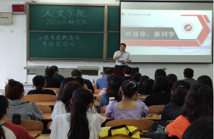 2020911日上午9點,2020級研究生專業(yè)教育大會暨導(dǎo)師見面會在人文學(xué)院鄠邑校區(qū)B210教室正式舉行。本次會議由人文學(xué)院副黨委書記盛丹主持,人文學(xué)院黨委書記余小勇、院長李濤、副院長方松林、研究生秘書張盼、輔導(dǎo)員崔馨文以及2020級人文學(xué)院研究生指導(dǎo)老師出席此次會議,1072020級研究生新生參會。