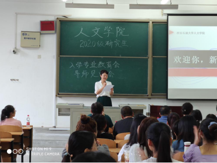 接下來李濤院長祝賀全體新生“夢想照進現(xiàn)實”成為西安石油大學(xué)研究生的一員,為同學(xué)們介紹了人文學(xué)院的基本情況,師資力量以及一系列科研成果,為2020級新生快速融入學(xué)院新環(huán)境奠定了基礎(chǔ),進一步了解人文學(xué)院光輝歷史及環(huán)境。李濤院長特別強調(diào)了人文學(xué)院院訓(xùn):“學(xué)為好人”,這四個字為全體師生指明了方向和道路,希望每一位學(xué)子樹立正確的社會價值觀,努力學(xué)習(xí)為國家社會傳播真善美,做一個有意義的人。