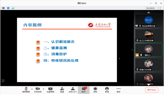 82223日,學(xué)院“復(fù)學(xué)第一課”教育大會依托“騰訊會議”分年級在線上召開,各年級輔導(dǎo)員主持,學(xué)院黨政領(lǐng)導(dǎo)、系主任、班主任、專業(yè)骨干教師等30余人次應(yīng)邀參會指導(dǎo),全院近1100名本科生按時參會。按照學(xué)院統(tǒng)一的教育方案,結(jié)合各年級不同學(xué)習(xí)特點,“復(fù)學(xué)第一課”從疫情防控、請銷假制度執(zhí)行、學(xué)生公寓管理、晨午檢制度落實、穩(wěn)定安全排查等方面開展了專題教育,就考風(fēng)考紀、學(xué)業(yè)警示、返校復(fù)課要求、思想動態(tài)調(diào)查等作講解和要求;30余名教師從疫情防控入手,就開學(xué)課業(yè)銜接、上課準(zhǔn)備要求、四六級備考及考研復(fù)習(xí)等作了宣講動員。