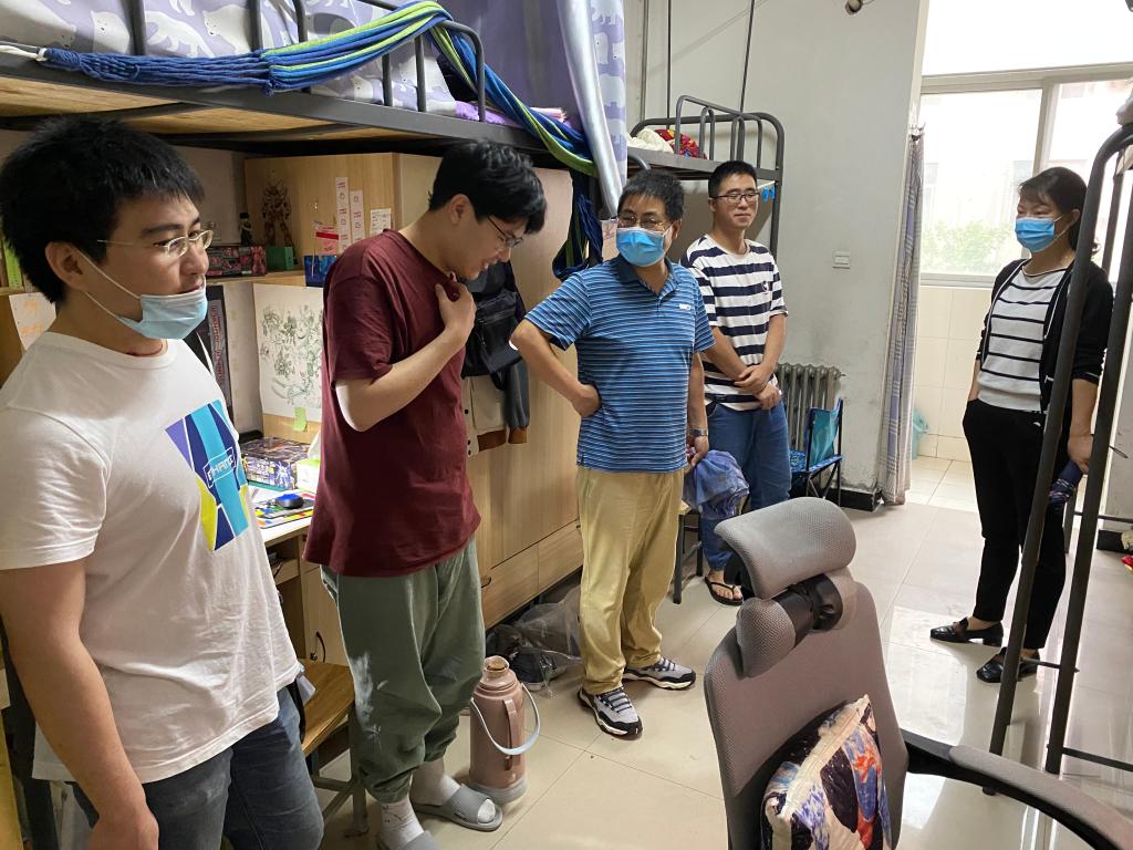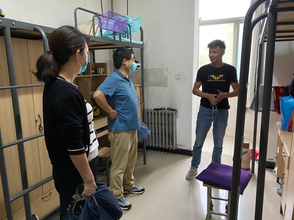 走訪中,余書記向?qū)W生詳細(xì)了解了宿舍衛(wèi)生安全狀況以及個(gè)人防護(hù)物品發(fā)放的情況,叮囑他們特殊時(shí)期要做到勤通風(fēng)、勤洗手、戴口罩。盛書記希望同學(xué)們保持樂(lè)觀積極的心態(tài)和科學(xué)健康的生活方式,配合做好每日健康申報(bào)工作。學(xué)生們表示,理解學(xué)校在非常時(shí)期采取的封閉管理措施,將在日常生活中保持宿舍衛(wèi)生及通風(fēng),不給疫情防控工作增加壓力。