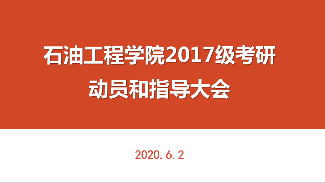 為進一步提高考研積極性,增進學生對考研的了解,挖掘自身潛能,石油工程學院于6月2日下午2點召開2017級考研動員和指導大會。院長周德勝、黨委副書記張建高、副院長劉志坤、學工辦主任朱戰(zhàn)威、研究生教學管理負責老師王小香和2016級考研學生代表出席本次會議,2017級有考研意愿同學參加本次大會,會議由2017級輔導員孫浩哲主持。