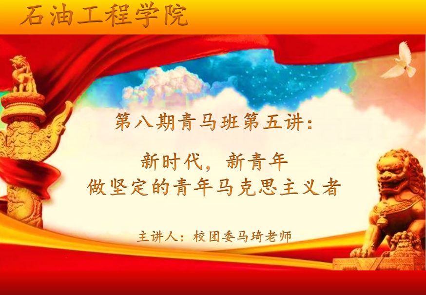 為進(jìn)一步提升青年學(xué)生的理論修養(yǎng),強(qiáng)化理想信念,529日下午石油工程學(xué)院第八期初級(jí)青馬班第五講順利開展。校團(tuán)委馬琦老師受邀為全體參訓(xùn)學(xué)員講授了題為新時(shí)代,新青年,做堅(jiān)定的青年馬克思主義者的線上培訓(xùn),我院2019級(jí)120余名學(xué)生干部參加了此次培訓(xùn)活動(dòng)。