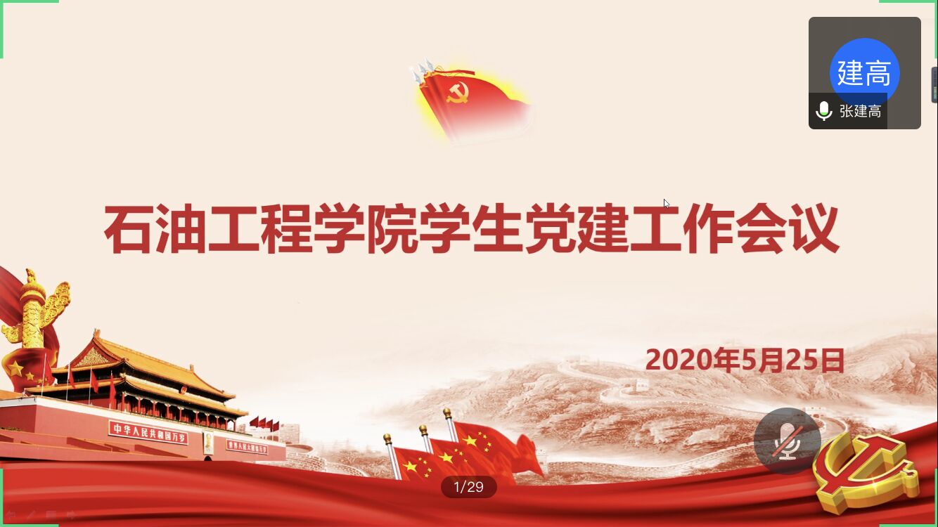 525日中午,石油工程學(xué)院線(xiàn)上召開(kāi)了學(xué)生黨建工作會(huì)議。學(xué)院黨委副書(shū)記張建高、學(xué)生管理辦公室主任朱戰(zhàn)威、黨委專(zhuān)職組織員劉曉陽(yáng)、各學(xué)生黨支部支委、學(xué)生黨建辦公室全體成員參加了本次會(huì)議。