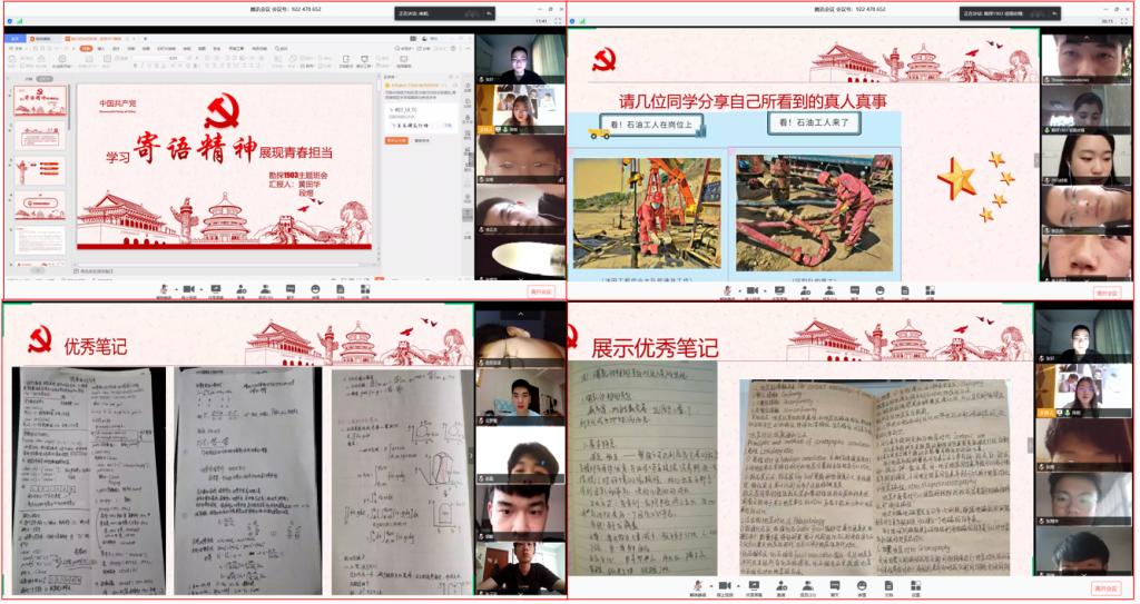 接著,通過(guò)觀看疫情期間石油工人堅(jiān)持工作的短視頻,班委黃田華帶領(lǐng)同學(xué)們分享討論了不同行業(yè)青年人的先進(jìn)事跡,引導(dǎo)同學(xué)們崇尚先進(jìn),學(xué)習(xí)先進(jìn),爭(zhēng)當(dāng)先進(jìn),學(xué)習(xí)衣食無(wú)憂(yōu)而不忘艱苦,歲月靜好而不丟奮斗的精神。
