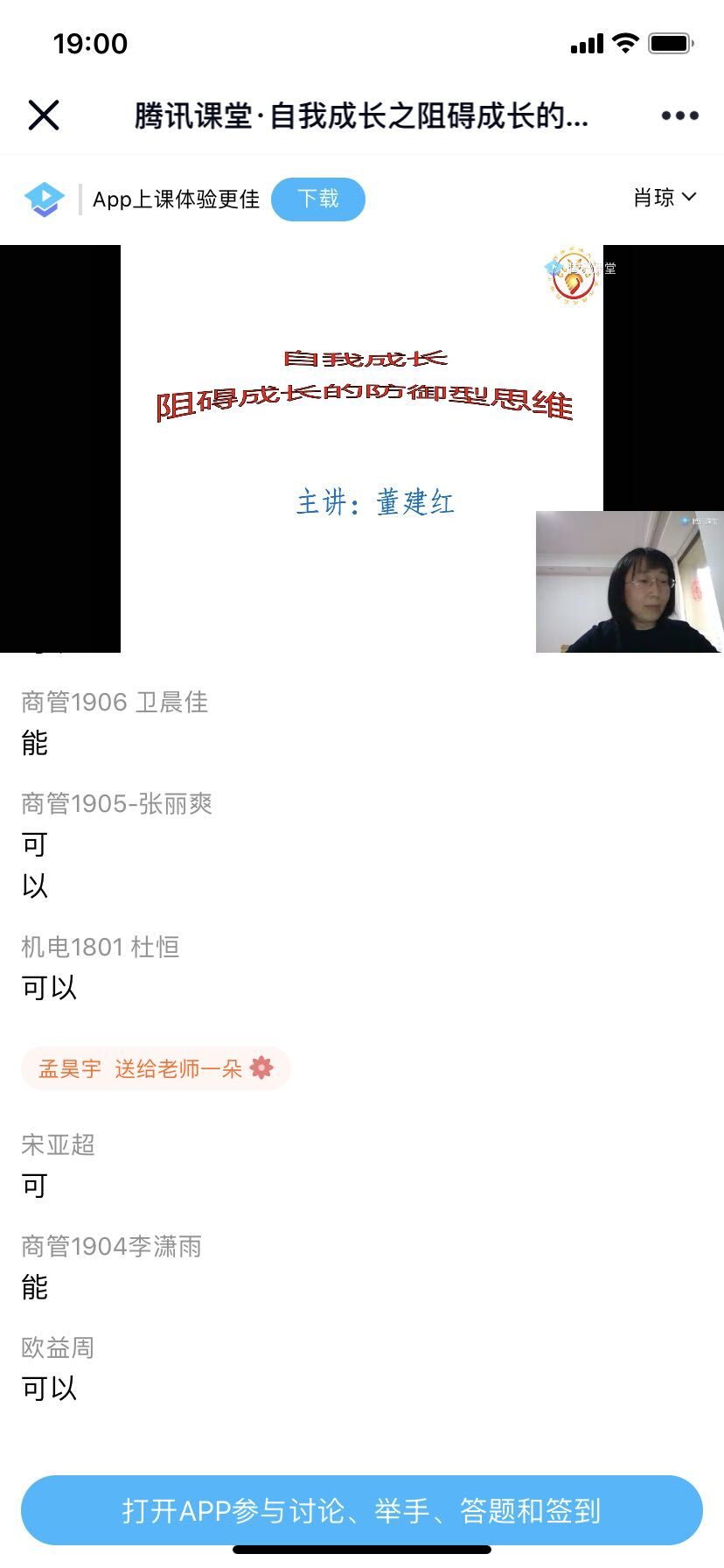 為繼續(xù)完善和加強我校師生在疫情期間的心理健康教育,429日晚,我校學(xué)生心理成長指導(dǎo)中心教師董建紅老師在騰訊課堂進行了《自我成長之阻礙成長的防御型思維》專題講座,我校部分師生、后勤樓管人員、全校心理委員近600人在線觀看學(xué)習(xí)。
