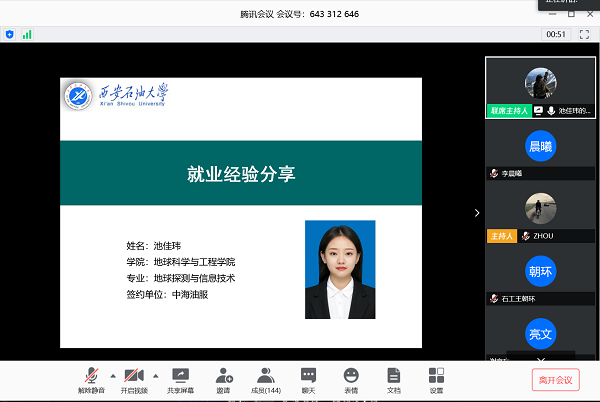 429日下午,由校團(tuán)委和就業(yè)指導(dǎo)中心聯(lián)合主辦的石大青年論壇第263期在嗶哩嗶哩和騰訊會(huì)議兩個(gè)平臺(tái)同步進(jìn)行。我校2020屆畢業(yè)生池佳瑋、屈偉民同學(xué)通過(guò)網(wǎng)絡(luò)平臺(tái)與1400余名學(xué)生進(jìn)行了就業(yè)經(jīng)驗(yàn)分享和交流。