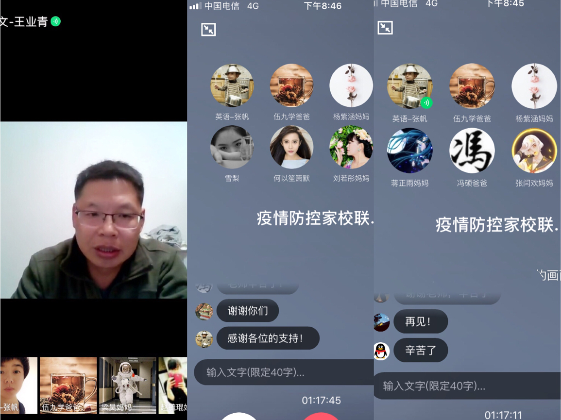 會(huì)議中,兩位老師與家長們進(jìn)行了深入交流,了解學(xué)生線上學(xué)習(xí)、交換生學(xué)習(xí)、考研復(fù)試以及就業(yè)求職中遇到的困難,尤其針對(duì)學(xué)校復(fù)學(xué)工作計(jì)劃、復(fù)學(xué)之后學(xué)校的防控保障措施向家長進(jìn)行了逐一解答。