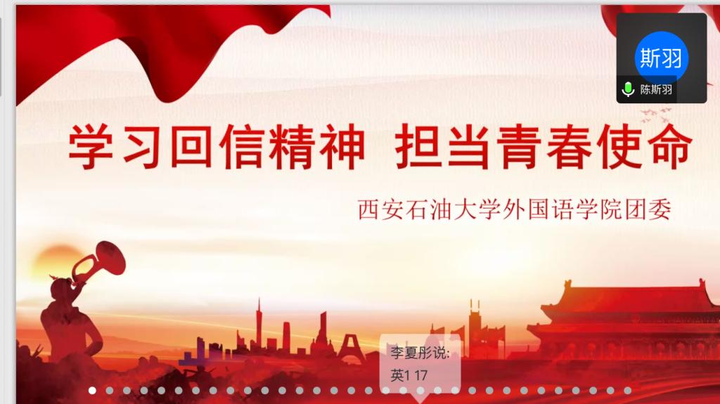 云端的雙語主題團(tuán)日---外國語學(xué)院開展“學(xué)習(xí)回信精神,擔(dān)當(dāng)青春使命”主題團(tuán)日活動(dòng)