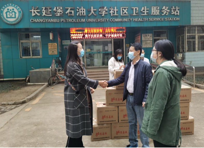 2020年3月28日下午,經(jīng)濟(jì)管理學(xué)院商務(wù)1801班賈歡煦同學(xué)在父親的陪同下從咸陽來到學(xué)校捐贈疫情防控物資。國有資產(chǎn)處、校醫(yī)院代表接收捐贈。
