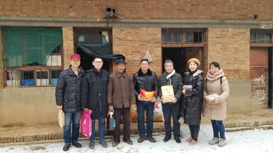 1月15日早八點(diǎn),西安南郊飄起今冬第一場(chǎng)雪花。因惦記扶貧家庭,不知其年前是否有需要解決的困難、是否備足了御寒的衣物。為能夠了解詳細(xì)情況,及時(shí)送去圖書館教職工的溫暖和關(guān)懷,由張偉副館長(zhǎng)帶隊(duì),圖書館教職工一行6人不畏嚴(yán)寒,迎著風(fēng)雪赴永壽縣堅(jiān)固村開(kāi)展精準(zhǔn)扶貧。