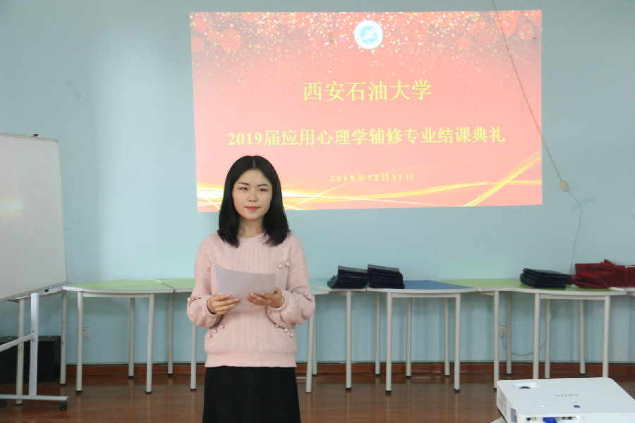 12月31日中午1點,我校2019屆應(yīng)用心理學(xué)輔修專業(yè)結(jié)課典禮在鄠邑校區(qū)人文經(jīng)管樓427舉行。教務(wù)處副處長易和平、學(xué)生心理成長指導(dǎo)中心全體教師、應(yīng)用心理學(xué)輔修專業(yè)學(xué)生代表50余人參加。