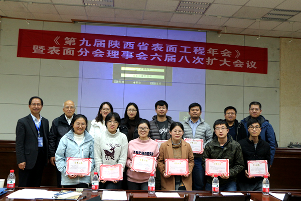 陜西省機械工程學會監(jiān)事長任國梁高工作為老一輩表面工程技術專家,在會議期間鼓勵年輕學者勇于創(chuàng)新、再接再厲將陜西省表面工程技術的發(fā)展推向更高的起點,并與材料學院張驍勇院長、表面分會理事長李長久教授、秘書長楊冠軍教授一起向優(yōu)秀報告頒獎。