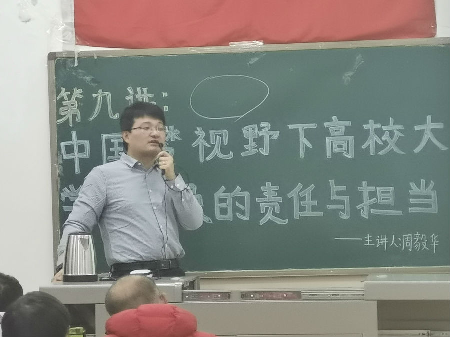 首先,周毅華老師為全體學員講解了中國夢的內(nèi)涵——實現(xiàn)中華民族偉大復興,這是近代以來中華民族最偉大的夢想。他說,共產(chǎn)黨一經(jīng)成立,就把實現(xiàn)共產(chǎn)主義作為黨的最高理想和最終目標,義無反顧地肩負起實現(xiàn)中華民族偉大復興的歷史使命,團結帶領人民進行了艱苦卓絕的斗爭,譜寫了氣吞山河的壯麗史詩。接下來,周老師講述了中國共產(chǎn)黨的發(fā)展歷史和中國夢視野下高校大學生黨員的責任與擔當。自習近平總書記在參觀復興之路時第一次明確提出中國夢以來,中國夢一度成為社會輿論熱議的話題,也成為國際社會關注中國的焦點。中國夢為我們勾畫出了國家富強、民族復興、人民幸福的美麗前景,是指引著黨和人民前進的方向。當代大學生作為思維活躍、視野開闊、富有激情和創(chuàng)造力的高素質(zhì)青年群體,是實現(xiàn)中國夢的主力軍,肩負著實現(xiàn)中國夢的歷史使命,大學生在實現(xiàn)中國夢的偉大事業(yè)中應當大有作為。