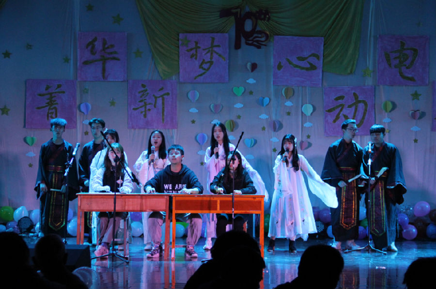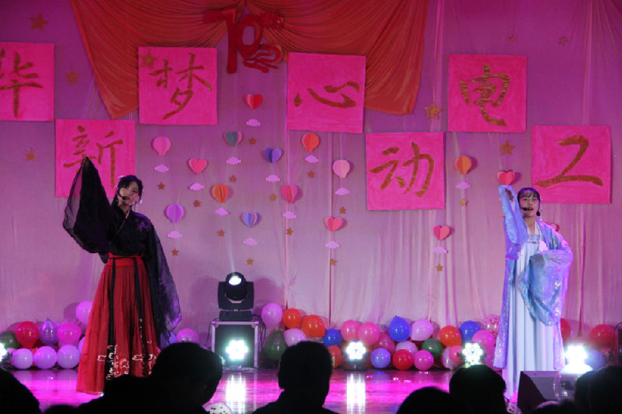 本次晚會共分“奮斗的青春最美麗”以及“不忘初心?牢記使命”兩個篇章,共有4個教工節(jié)目和11個學(xué)生節(jié)目,充分彰顯了我院師生攜手共進(jìn),共創(chuàng)佳績的精神風(fēng)貌。歌曲《青花瓷》然我們感受了令人神往的江南古鎮(zhèn)古典之美;由院黨委書記何鋮等6位教授共同表演的原創(chuàng)配樂詩朗誦《六紀(jì)尋脈》展現(xiàn)了我院教授的激揚風(fēng)采,表達(dá)了石油人對母校和莘莘學(xué)子的殷殷期盼;我院研究生傾情演唱的歌曲《一萬次悲傷+崇拜》唱出新一代高校大學(xué)生的夢想力量;《伊人思夢》以水袖舞和古風(fēng)歌曲的表現(xiàn)形式,展現(xiàn)了中華傳統(tǒng)文化之美;南瓜車上的《灰姑娘》幽默但不美麗,可愛但不精致,卻深深吸引住同學(xué)們的眼球;維吾爾族舞蹈《情之光》熱情洋溢;舞臺劇+朗誦《奮進(jìn)石油人》展現(xiàn)了我院學(xué)子的石油情懷。由院長仵杰教授領(lǐng)隊的12名教師合唱的《映山紅》和《祖國不會忘記》展現(xiàn)了我院教師靚麗的形象和專業(yè)的唱功,退休教授漢澤西老師朗誦的《沁園春?雪》將觀眾帶回了那個過去的年代,感悟了一代代為電子工程學(xué)院發(fā)展做出貢獻(xiàn)的前輩們的忘我精神境界。由學(xué)院自動化專業(yè)阮巖副教授指導(dǎo)的教工集體舞《我和我的祖國》在鮮艷的中國紅舞裙襯托下的教師們優(yōu)美的舞姿再次將晚會推向高潮。晚會最后在歡快愉悅的的吉他彈唱《少年錦時》中落下了帷幕。