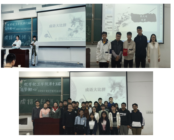 奮進逐夢西石大,堅守初心化工人,為慶祝祖國成立七十周年,改革逐夢取得舉世矚目的成果,深入學習貫徹習近平新時代中國特色社會主義思想和黨的十九大精神,傳承“愛國、進步、民主、科學”的五四愛國主義精神,激勵引領廣大青年學子大力弘揚以愛國主義為核心的偉大民族精神,激勵西石大化學化工學院學子奮力逐夢,堅守初心,同時,祝愿化學化工學院勇攀高峰,再創(chuàng)輝煌,化學化工學院舉辦以“逐夢·初心”為主題的宿舍文化節(jié),先后舉辦了“金秋杯”辯論賽、“英語風采大賽”、“成語大比拼”、“”我在未來等你”等系列活動。