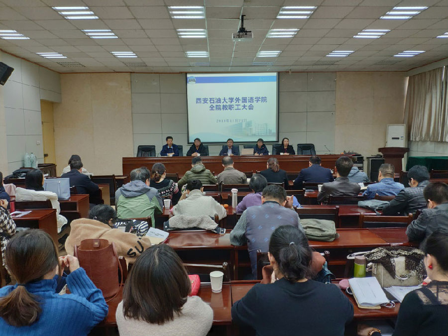 11月21日下午,外國語學(xué)院在雁塔校區(qū)第三會議室召開全院教職工大會暨師德師風(fēng)專題學(xué)習(xí)會,學(xué)院全體教職工參加會議,會議由學(xué)院黨委書記蔡強(qiáng)主持。