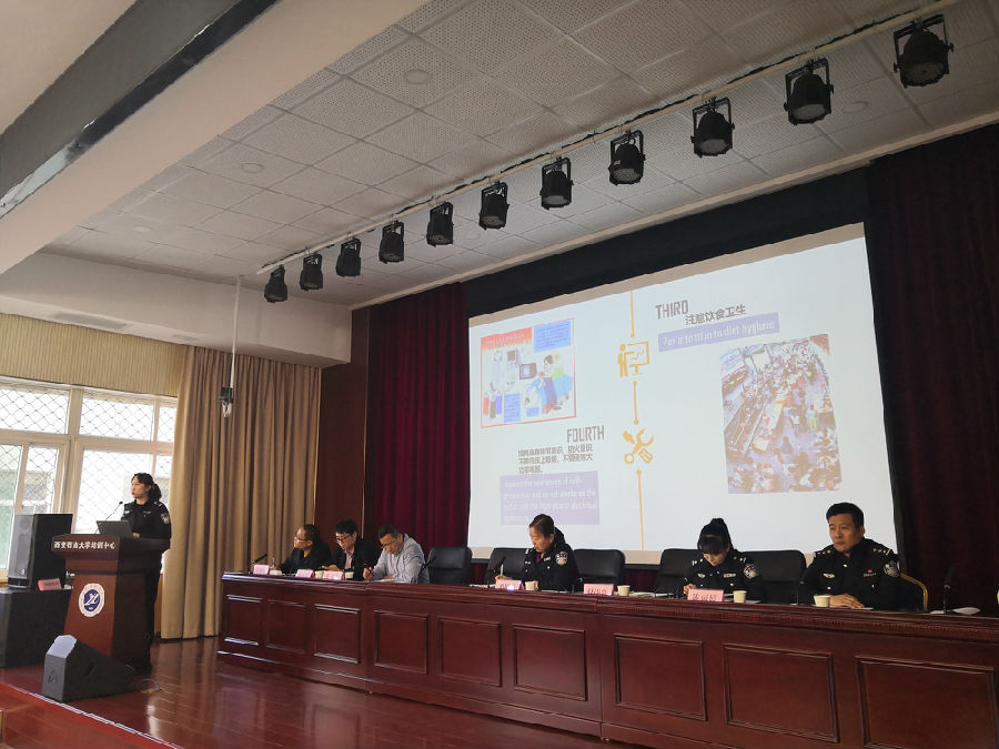 西安市公安局出入境管理局警官首先介紹了中國(guó)涉外相關(guān)法律法規(guī),然后針對(duì)外國(guó)留學(xué)生特點(diǎn)、結(jié)合真實(shí)案例,用深入淺出的語(yǔ)言就宗教信仰、交通安全、人身財(cái)產(chǎn)安全、禁毒防毒、簽證辦理等方面進(jìn)行了詳細(xì)講解,給留學(xué)生在華學(xué)習(xí)、生活等方面提出了很好的指導(dǎo)與建議。