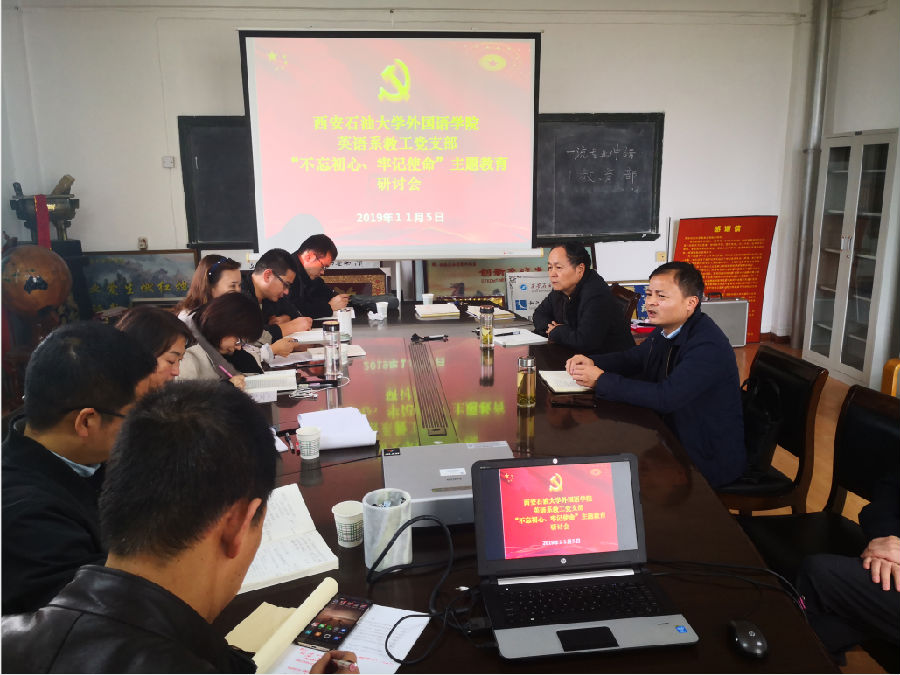 11月5日下午,外國語學(xué)院英語系教工黨支部在雁塔校區(qū)第一教學(xué)樓701會(huì)議室開展了支部書記講黨課學(xué)習(xí)活動(dòng)暨“不忘初心、牢記使命”專題教育研討會(huì),研討會(huì)由外國語學(xué)院副院長、英語系黨支部書記陳武主持。