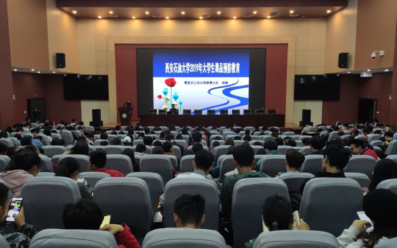 我校保衛(wèi)處、學生工作處于2019年10月30日在鄠邑校區(qū)圖書館弘石學術報告廳舉行了“西安石油大學2019年大學生毒品預防教育講座”,講座由保衛(wèi)處治安科科長韓勇主持,邀請西安市公安局鄠邑分局禁毒大隊副隊長楊峰警官擔任主講,學生工作處副處長龐秉謙組織各院系學生代表400余人參加了此次講座。