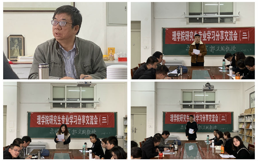理學院不斷強化學風建設,增強對研究生的教育、服務、管理工作,本學期計劃組織召開的三場研究生專業(yè)學習分享交流會全部完成。三場交流活動先后得到了傅海威教授、陳國祥教授、郭文閣教授的精彩點評指導,給同學們提供了一個思維碰撞、學術交流的平臺與機會,對于不斷加強理學院研究生培養(yǎng)質(zhì)量起到了積極的作用。