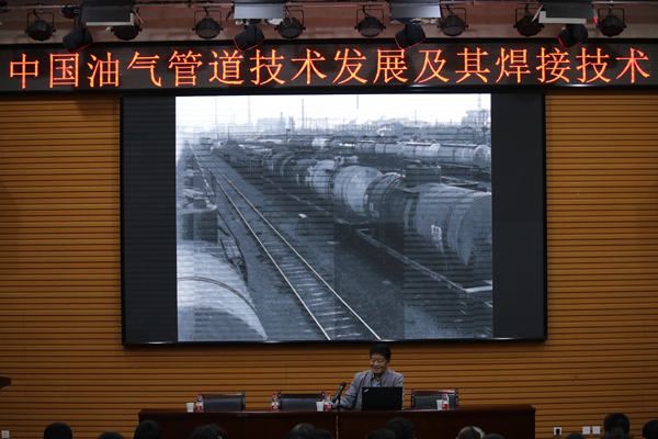 報告會上“石油一輩子,焊接一輩子。”薛振奎教授首先用一句話概括了他與焊接的不解之緣。薛教授幽默風(fēng)趣地與師生們分享了自己與管道事業(yè)的精彩故事,介紹了國內(nèi)外管道建設(shè)的歷史與現(xiàn)狀,提出了焊接接頭高強匹配、焊接熱影響區(qū)開裂及軟化、焊接缺陷容限等是管道焊接需要解決的關(guān)鍵技術(shù)問題,暢談了未來中國管道技術(shù)的發(fā)展趨勢,著重講解了高效焊接技術(shù)在油氣管道中的應(yīng)用。
