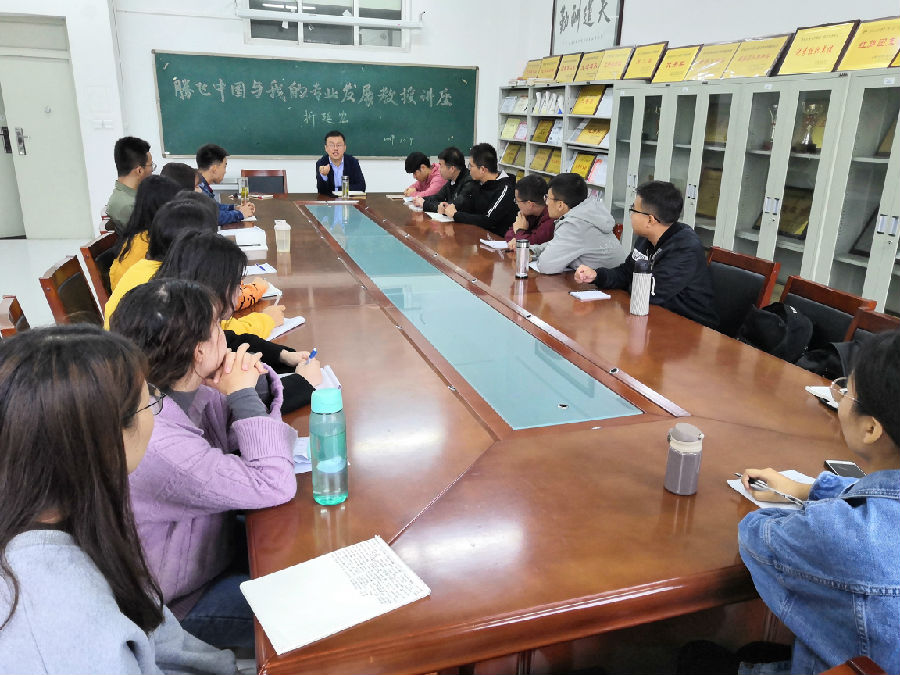 為進(jìn)一步加強(qiáng)對研究生的思想政治教育,拓展研究生專業(yè)知識(shí),加深學(xué)生對所學(xué)專業(yè)及未來前景的認(rèn)識(shí),10月9日上午,理學(xué)院在鄠邑校區(qū)111室舉辦題為“騰飛中國和我的專業(yè)發(fā)展”第一場專題講座,副院長折延宏教授主講、黨委副書記馬小剛主持,2019級全體研究生參加。