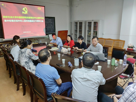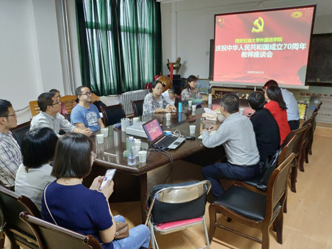 10月1日上午,外國語學院黨委理論學習中心組在雁塔校區(qū)1號主樓701會議室集中收看慶祝中華人民共和國成立70周年大會并召開了教師座談會。學院黨政領導班子、理論中心組成員、教工黨支部書記(副書記)及各系部主任(副主任)參加了會議,會議由學院黨委書記蔡強主持。