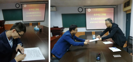 四是開展新提任科級(jí)領(lǐng)導(dǎo)干部廉潔談話教育。為進(jìn)一步提高新提任科級(jí)干部對(duì)黨風(fēng)廉政建設(shè)重要性認(rèn)識(shí),增強(qiáng)廉潔勤政意識(shí),2019年9月25日上午,學(xué)院黨委對(duì)新提任的2名科級(jí)干部進(jìn)行了廉政談話教育。學(xué)院黨委書記司馬文龍從三個(gè)方面提出了具體要求,一是信念過硬,提高思想境界,永葆本色;二是政治過硬,加強(qiáng)學(xué)習(xí),踏實(shí)做事;三是作風(fēng)過硬,廉潔自律,以身作則。學(xué)院2位新任科級(jí)干部從依法行政、秉公用權(quán)、廉潔自律角度逐一交流了認(rèn)識(shí)和決心,并簽訂了“廉潔自律承諾書”。此次談話教育,進(jìn)一步明示了科級(jí)干部履職需遵照?qǐng)?zhí)行的黨規(guī)黨紀(jì)要求等剛性約束,又體現(xiàn)了組織對(duì)確保新提任人員履好職、起好步的關(guān)懷溫度,進(jìn)一步強(qiáng)化了新提任科級(jí)領(lǐng)導(dǎo)干部的依法行政意識(shí)和廉潔從政意識(shí)。