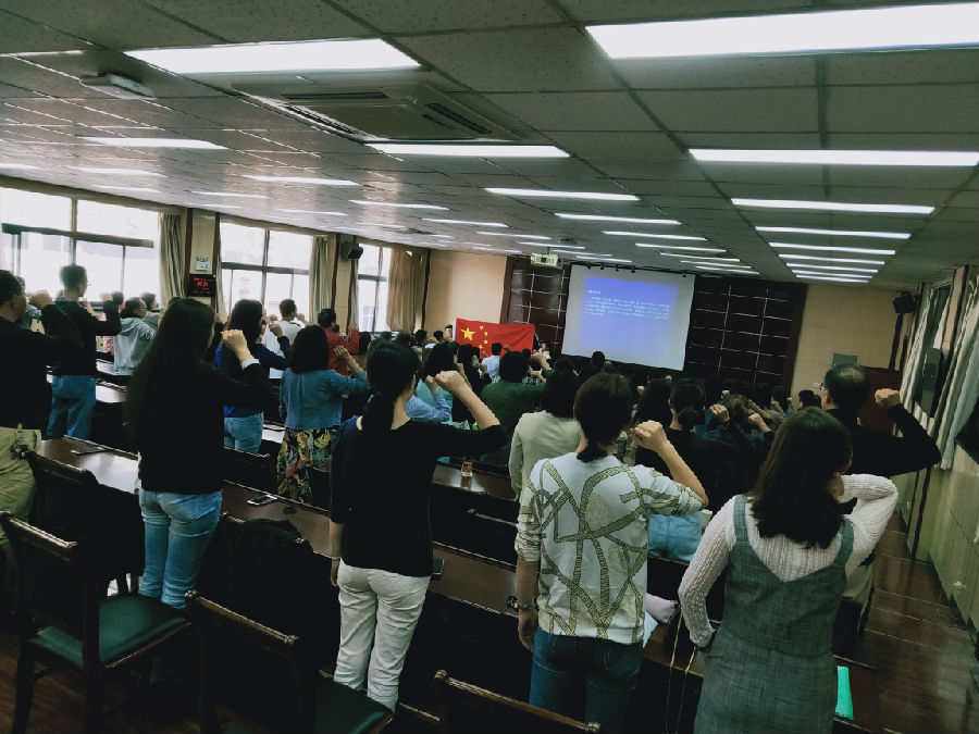 會議首先安排進行了教師集體宣誓儀式。宣誓儀式由蔡強書記領(lǐng)誓,學院領(lǐng)導、全體教職工110余人全體起立,右手舉拳,面對國旗莊嚴誓言,鄭重承諾履行教師職責,牢記人民教師職業(yè)初心與光榮使命。通過宣誓活動,全體教職工進一步提升了服務國家、獻身教育的思想意識,增強了作為一名人民教師的職業(yè)榮譽感和社會責任感。