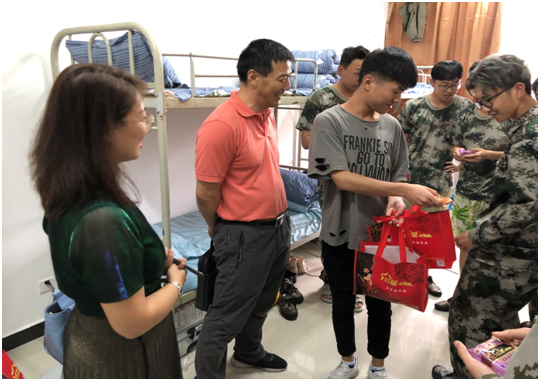 孟書記一行先后來到經(jīng)管人文院系樓和16號學(xué)生公寓樓新生宿舍,給學(xué)生們帶去了中秋月餅,為學(xué)生送去中秋的祝福。孟書記每到一個宿舍都與同學(xué)們進行了親切的交流,向新生們了解軍訓(xùn)期間的住宿和生活情況,悉心詢問同學(xué)們來自哪里,生活環(huán)境的適應(yīng)情況,特別對于離家較遠的同學(xué),詢問他們是否有不適應(yīng)的地方,并給予他們鼓勵和建議。孟書記叮囑大家要盡快適應(yīng)大學(xué)生活,做好學(xué)習(xí)規(guī)劃,室友間要和諧相處、互相幫助,遇到困難和問題及時向老師和學(xué)校尋求幫助。此外,孟書記一行還視察了新生宿舍的內(nèi)務(wù)情況,對同學(xué)們能夠保持宿舍衛(wèi)生干凈整潔,嚴格按照軍訓(xùn)標準要求自己給予了肯定,并希望同學(xué)們把好的生活衛(wèi)生習(xí)慣繼續(xù)保持下去。