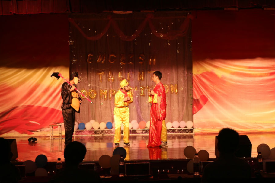 此次大賽主要包括歌曲、話劇、演講三項比賽內容。開場歌曲《Season in the sun》首先將現場觀眾帶入到了比賽氛圍當中,《Diamonds》《When I was your man》《Love yourself》三首歌曲讓觀眾們對親情和生命的意義有了更多感悟和思考?!禡y heart will go on》《You raise me up》分別將泰坦尼克號浪漫故事和“9·11事件”悲劇濃縮到了短短四分鐘的歌聲中。話劇《The true meaning of college life》幫助同學們理解什么是大學生活的真正意義,《西游記之白骨精與女兒國》和《白娘子傳奇》讓我們看到同學們用英語對經典的再演繹。演講《Are you a leaf, branch or root》告訴我們如何調整自己的處事心態(tài),《The groundless brliefs》幫助我們探究自我盲從和迷信從何而生,《Undergraduate students dating is a good idea》讓我們感受到不一樣的大學生活。