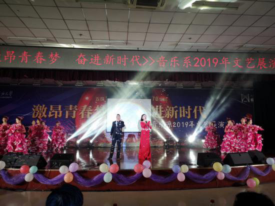 為紀(jì)念五四運(yùn)動100周年,慶祝新中國70華誕,我校音樂系于6月5日在鄠邑校區(qū)舉辦了2019年文藝展演。校黨政領(lǐng)導(dǎo)李天太、張木、蘇文甫以及部分職能處室負(fù)責(zé)人,鄠邑校區(qū)本科生共計400余人觀看晚會。