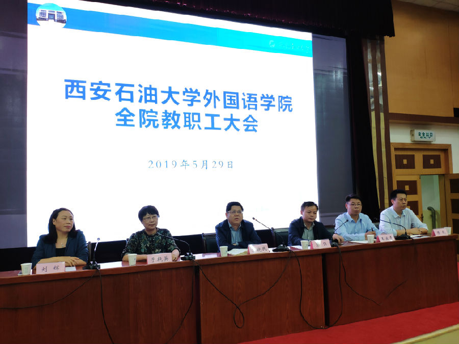 5月29日下午,外國語學(xué)院在雁塔校區(qū)學(xué)術(shù)報告廳召開全院教職工大會暨學(xué)院系(部)、中心干部任職宣布大會。學(xué)??倳嫀?、聯(lián)系學(xué)院校領(lǐng)導(dǎo)樊曉民出席大會。會議由外國語學(xué)院黨委書記蔡強主持。