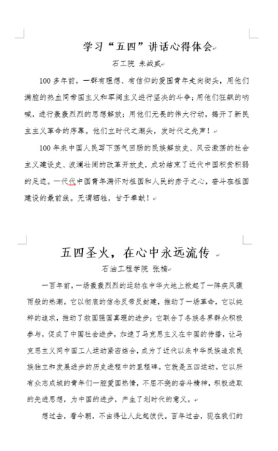 為紀(jì)念五四運(yùn)動(dòng)100周年,深入學(xué)習(xí)貫徹習(xí)近平總書記在紀(jì)念五四運(yùn)動(dòng)100周年大會上的重要講話精神,引導(dǎo)高校青年大學(xué)生加深對五四運(yùn)動(dòng)歷史意義和時(shí)代價(jià)值的認(rèn)識,石油工程學(xué)院于5月份開展學(xué)習(xí)習(xí)近平總書記在紀(jì)念五四運(yùn)動(dòng)100周年大會上講話精神系列活動(dòng)。