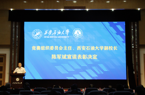 下午2時(shí),閉幕式和頒獎(jiǎng)典禮在嚴(yán)肅莊嚴(yán)的國(guó)歌聲中拉開帷幕。西安石油大學(xué)副校長(zhǎng)楊戰(zhàn)社主持閉幕式。