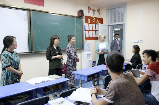 儀式結(jié)束后,在陳紅校長(zhǎng)的陪同下,王院長(zhǎng)、聶副處長(zhǎng)參觀了校史館,并到留學(xué)生班級(jí)親切互動(dòng)交流,深入了解西安博愛(ài)國(guó)際學(xué)校發(fā)展情況,為下一步入校招生宣傳和專(zhuān)場(chǎng)報(bào)告選題做初步調(diào)研。