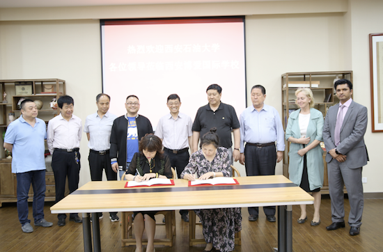 2019年5月27日,西安石油大學(xué)經(jīng)濟(jì)管理學(xué)院院長(zhǎng)王君萍、財(cái)務(wù)處副處長(zhǎng)聶朝恩及教師陳丁前往西安博愛(ài)國(guó)際學(xué)校,就共建優(yōu)秀生源基地等事宜與王國(guó)平董事長(zhǎng)、南國(guó)慶監(jiān)事長(zhǎng)、陳紅校長(zhǎng)、國(guó)際部Nancy主任進(jìn)行座談并達(dá)成共識(shí),雙方簽約共建“優(yōu)秀生源基地”,并舉行授牌儀式。