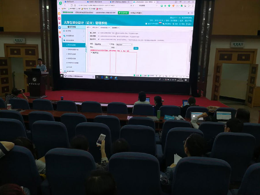 此次培訓(xùn)得到了教務(wù)處的大力支持,教務(wù)處實(shí)踐教學(xué)科劉曉東老師結(jié)合外國(guó)語(yǔ)學(xué)院外語(yǔ)專業(yè)特點(diǎn),對(duì)外語(yǔ)專業(yè)畢業(yè)論文網(wǎng)上管理進(jìn)行了詳細(xì)講解,并現(xiàn)場(chǎng)解答了指導(dǎo)老師提出的問題。