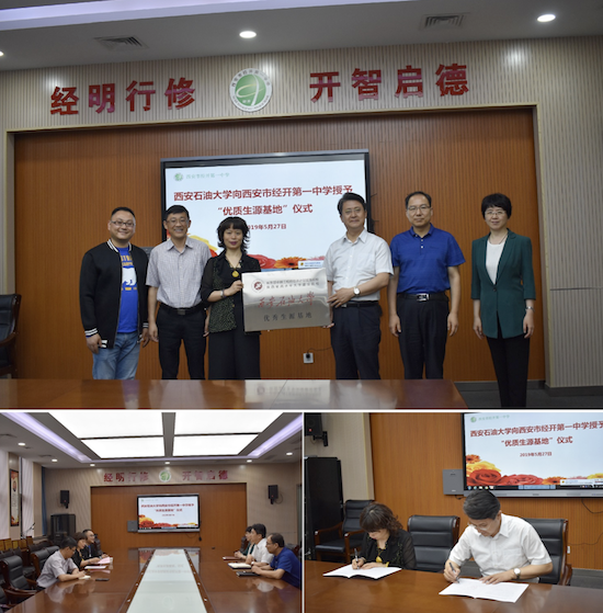 2019年5月27日,經(jīng)濟(jì)管理學(xué)院院長(zhǎng)王君萍、財(cái)務(wù)處副處長(zhǎng)聶朝恩、教師陳丁一行前往西安市經(jīng)開第一中學(xué),就共建“優(yōu)秀生源基地”事宜舉行座談,并進(jìn)行優(yōu)秀生源基地授牌儀式。