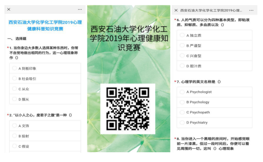 為豐富大學(xué)生校園文化活動(dòng),普及大學(xué)生心理健康知識(shí),促進(jìn)大學(xué)生全面協(xié)調(diào)發(fā)展,擁有健全的人格和幸福的體驗(yàn),5月5日-5月8日,學(xué)院各年級(jí)、班級(jí)積極組織學(xué)生共計(jì)1500人參加了在線心理健康知識(shí)競(jìng)賽。同學(xué)們紛紛表示,在此次的活動(dòng)中收獲頗豐,以后會(huì)以更加積極的心態(tài)去面對(duì)生活中所遇到的挫折與挑戰(zhàn)。