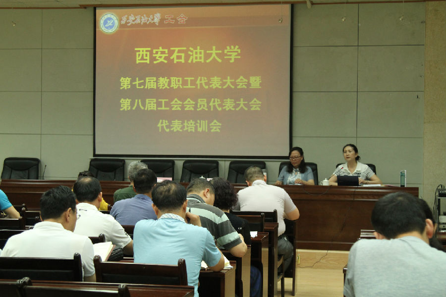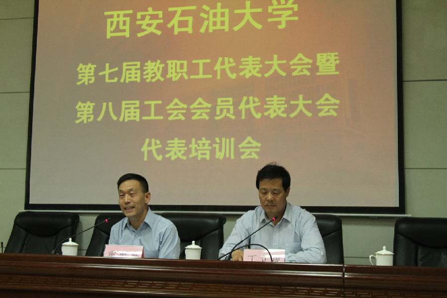 5月24日上午,西安石油大學(xué)第七屆教職工代表大會暨第八屆工會會員代表大會代表培訓(xùn)班在雁塔校區(qū)第三會議室舉行。陜西省總工會黨組成員、副主席丁立虎同志為培訓(xùn)班成員作了《圍繞中心 服務(wù)大局 凝心聚力建設(shè)高水平大學(xué) 》的專題講座。校黨委副書記雷西合、“雙代會”各代表團(tuán)負(fù)責(zé)人、各部門工會主席及校工會全體人員共80余人參加了培訓(xùn)。