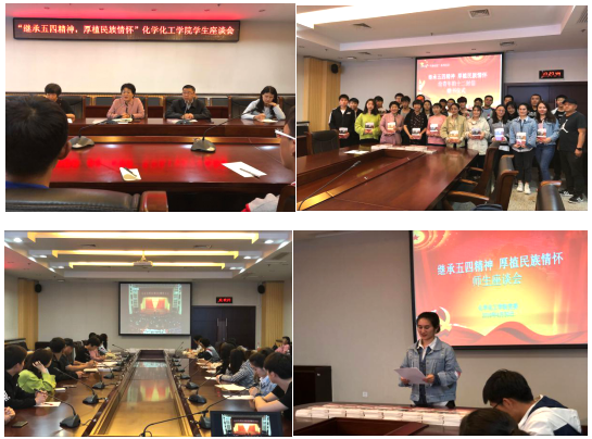 在黨委學(xué)生工作部的指導(dǎo)下,學(xué)院在鄠邑校區(qū)會(huì)議中心第二會(huì)議室召開了“繼承五四精神,厚植民族情懷”師生座談會(huì)。校黨委學(xué)生工作部民族生教育管理辦公室金葵、曾衛(wèi)軍,校黨委保衛(wèi)部政保科范俊鵬,化學(xué)化工學(xué)院黨委副書記高黎、學(xué)院各年級(jí)輔導(dǎo)員及學(xué)院黨團(tuán)員骨干代表、學(xué)生干部代表、大學(xué)生參軍退役士兵代表、少數(shù)民族學(xué)生代表等35人參加座談。會(huì)議集體學(xué)習(xí)了習(xí)近平總書記關(guān)于紀(jì)念五四運(yùn)動(dòng)的講話精神,介紹了學(xué)院近年教育管理服務(wù)工作方面取得的成績(jī),結(jié)合五四精神對(duì)大學(xué)生提出了要求和希望,與會(huì)學(xué)生代表祖力皮亞面向全院學(xué)生發(fā)出倡議,希望大家都能繼承和弘揚(yáng)五四精神,努力爭(zhēng)做新時(shí)代社會(huì)主義合格建設(shè)者和可靠接班人。會(huì)議圍繞“繼承五四精神,厚植民族情懷”主題作了交流研討。恰逢學(xué)院“書香校園”建設(shè)活動(dòng)開展之際,學(xué)院黨委向與會(huì)師生贈(zèng)閱了北大教授朱光潛的著作《給青年的十二封信》,勉勵(lì)大家用實(shí)際行動(dòng)讓五四精神在新時(shí)代放射出新的光芒。