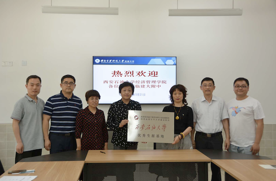 2019年5月21日,經(jīng)濟管理學院院長王君萍、財務(wù)處副處長聶朝恩、陳丁老師等一行三人代表學校赴西安建筑科技大學附屬中學,就共建優(yōu)秀生源基地等事宜進行座談、達成共識,雙方簽約共建優(yōu)秀生源基地,并舉行授牌儀式。
