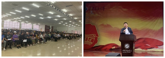 2019年4月24日晚上19:00,西安石油大學(xué)經(jīng)濟(jì)管理學(xué)院在騰輝大學(xué)生活動(dòng)中心召開2018級(jí)年級(jí)大會(huì),國際交流處負(fù)責(zé)香港項(xiàng)目的王老師、經(jīng)濟(jì)管理學(xué)院黨委副書記趙海濤老師、2018級(jí)輔導(dǎo)員尹曉嬌老師、陸曉寒老師與2018級(jí)600余名學(xué)生參加本次大會(huì)。