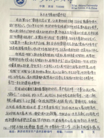 自3月5日以來,化學(xué)化工學(xué)院開展了“學(xué)習(xí)雷鋒做美德少年”的征文活動(dòng),26個(gè)團(tuán)支部58名同學(xué)參加征文比賽,其中化工1704班的陳玉坤同學(xué)在文章中這樣寫到:學(xué)會(huì)體諒別人,學(xué)會(huì)勞動(dòng)快樂,學(xué)會(huì)無私奉獻(xiàn)。生活中有許多小事需要我們?nèi)プ?。有可能去做的不是他,不是她,而是我們?/p>